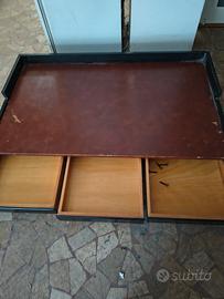 Scrivania Anni 70 Tre Cassetti In Pelle Con Struttura. Modernariato anni 70. Zampe in ferro da rivedere.