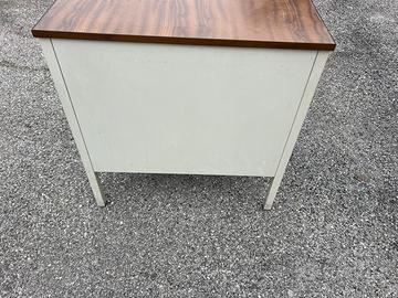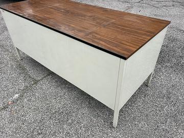 Scrivania anni 70’ con cassetti, struttura in ferro misure L. 180 larg. 75 h. 80