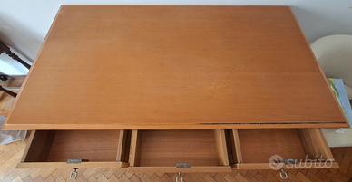 Scrivania con tre cassetti.