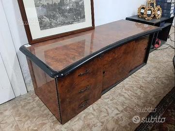 Bellissima scrivania in Radica Anni 80 in perfette condizioni con mobile abbinato. Misure Scrivania: 245 cm x 100 cm x H 80 cm Misure Mobile Basso: 148 cm x 60 cm x H 52 cm