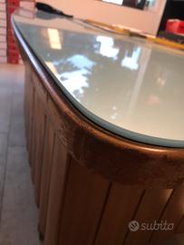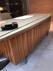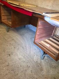 Scrivania Anonima Castelli dirigenziale curva Cristallo acquamarina 228x86x76 Originale anni 60 Doghe legno massiccio Piedi metallo Carpi Modena Vedi gli altri miei annunci anche su facebook