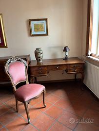 Vendo elegante scrivania in legno massello con 3 cassetti frontali, rifinita con maniglie in metallo. In ottime condizioni strutturali, leggeri segni del tempo. Inclusa sedia in stile classico con imbottitura in velluto rosa, solida e comoda. Ideale per arredare uno studio o un salotto con un tocco vintage. 📏 Dimensioni e foto su richiesta. 📦 Preferibile ritiro a mano (Bergantino). 🚛 Disponibile anche consegna nel breve raggio, costo a carico dell’acquirente (da definire), NO SPEDIZIONE. 💶 Prezzo trattabile. 📩 Scrivimi in privato se interessato/a!