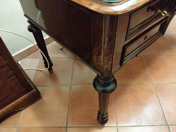Vendesi scrivania antiquariato restaurata con ripiano in vetro.