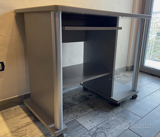 Vendo scrivania in ottime condizioni, colore grigio, con ruote per spostarla e particolare per il supporto laterale per PC fisso e il cassetto estraibile per la tastiera.