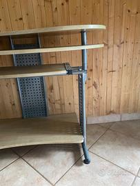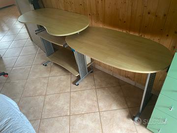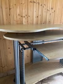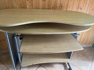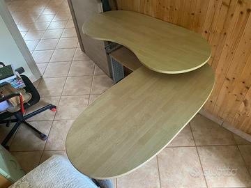 La scrivania è come nuova MISURE: Larghezza piano superiore: 115 cm Larghezza apertura totale: 200 cm Profondità: 53 cm (punto più largo), 45 cm (punto più stretto) Altezza: 84 cm