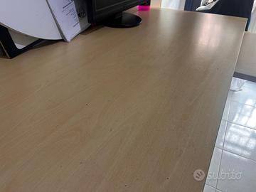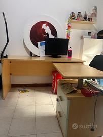 Vendo scrivania in legno in ottime condizioni con banco in piu sotto che si apre e si chiude e due cassetti.