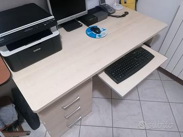 Vendo scrivania misure 140x60,con alloggio per pc desktop e tastiera. Buone condizioni, presenta solo piccoli segni di usura alla base dei fianchi.