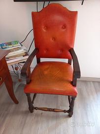 scrivania arte povera con poltroncina in pelle borchiata in buonissime condizioni