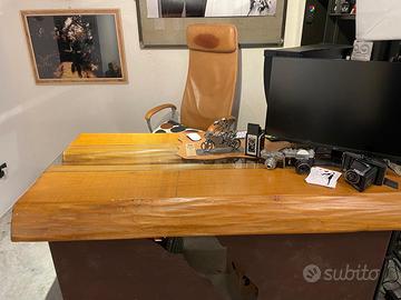 🪵 Scrivania artigianale in legno massello di tiglio con base in corten – design unico Vendo splendida scrivania artigianale realizzata in legno massello di tiglio con base in acciaio corten, dal design moderno e scultoreo. Il piano è composto da due elementi sagomati con inserto centrale in vetro, che dona leggerezza ed eleganza. La base in corten con taglio irregolare rende il pezzo unico e di forte impatto estetico. Perfetta per studio, ufficio o ambiente creativo. 📐 Dimensioni: Altezza: 81 cm Profondità: 90 cm Larghezza: 148 cm 📌 Condizioni: Buone condizioni generali, con normali segni d’uso visibili in foto. 🚚 Info: (scrivania pesante) prezzo 1850 trattabile