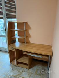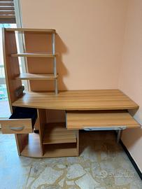Scrivania in legno con cassetto, ripiano estraibile (porta tastiera) e vari scompartimenti. Vendo per inutilizzo, utilizzata poche volte, come nuova. Disponibile per ritiro o consegna, prezzo trattabile