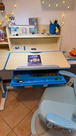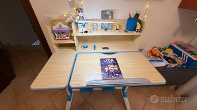Scrivania Bambini 3-12 Anni, Scrivania Regolabile in Altezza, Banco Scuola con Piano Inclinabile, Leggio, Cassetto e Libreria, Tavolo da Studio Ergonomico, 80x51,5x51-73cm (Blu