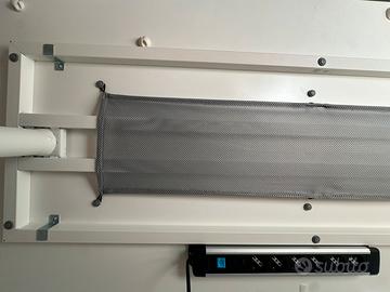 Scrivania Ikea BEKANT, 160x80, regolabile in altezza da 65 a 85cm, il piano è in ottimo stato, come nuovo, presenta solo 4 fori inferiormente per attaccare una ciabatta elettrica. Dispone di un raccogli cavi a rete