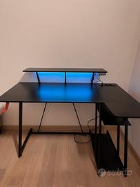 scrivania da gaming,dotata di luci led,mensola per appoggiare il monitor,porta cuffie,mensole porta oggetti e prese. altezza scrivania 74,5cm,altezza mensola 92cm,lunghezza 120cm. usata per un anno e mezzo