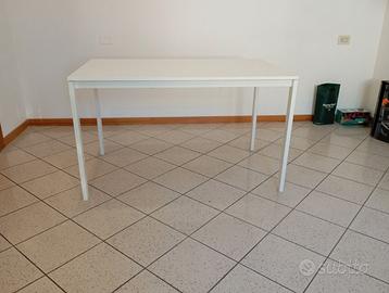 Scrivania bianca Ikea con piccoli elementi in metallo. Misura 120x70.