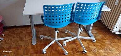 scrivania pieghevole bianca per 2 posti con 2 sedie blu dell ikea in buone condizioni