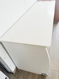 Scrivania con ruote Moretti Compact. Dimensioni (LxPxH): 2060 x 620 x 780 mm. Estraibile e salvaspazio, può essere abbinata a letto singolo Moretti (vedi foto esemplificativa) o altro di dimensioni compatibili.