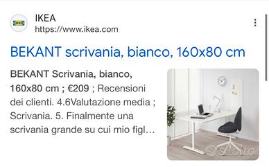 Vendo scrivania bianca Ika Bekant 160x80, altezza regolabile, in ottime condizioni disponibile da subito.