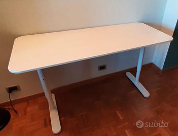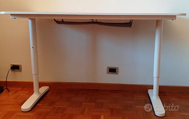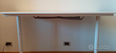 scrivania bianca IKEA modello Bekant. 140x60. Supporto Bekant regolabile in altezza. Rete porta oggetti. Il piano, su uno dei due lati, presenta leggeri segni di usura come da foto. Non spedisco.