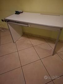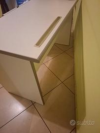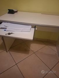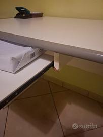 scrivania bianca, con lati chiusi e sportello tastiera estraibile