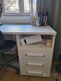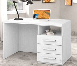 Vendo scrivanie di Mondo Convenienza con gambe in legno e cassettiera a destra, colore bianco larice. Usate, condizioni ottime. Cassetti e spazio sotto il tavolo capienti.