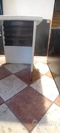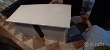 vendo scrivania bianca della misura di 54x120 cm. in buone condizioni con qualche piccolo difetto come in foto e cassettiera collegata