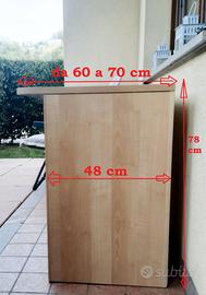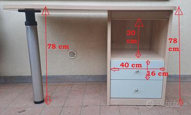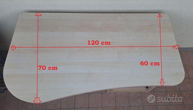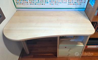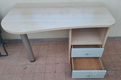 Vendo a prezzo di realizzo, non trattabile, scrivania in rovere chiaro con top a forma di pianoforte per arredare cameretta bimba/o. Misure max di ingombro: 120(larghezza)x70(profondità)x78(altezza) Comprata in mobilificio e fatta per durare (no Ikea no Mercatone o similari!), ancora perfetta sotto tutti i punti di vista (giunture, apertura dei cassetti, finiture ecc). Per le misure specifiche guardare le immagini per favore. Consegno brevimano già montata, da venir a prender a Tarcento. Si può comunque smontare facilmente, in parte, per il trasporto anche con auto di medie dimensioni (faccio vedere io). No perditempo grazie