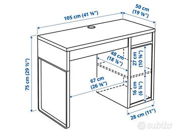 Causa trasloco, vendo scrivania Ikea mod. Micke caratterizzata dalla presenza di 2 cassetti, 1 anta e 1 foro passacavi.
