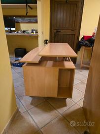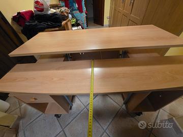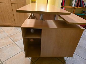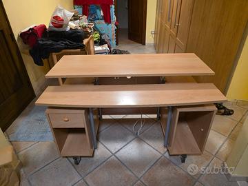 scrivania buono usato con cassetto e porta computer con fori per uscita cavi, altri spazi porta oggetti in entrambi i lati ed altezza piano inferiore regolabile. perfetta come appena acquistata