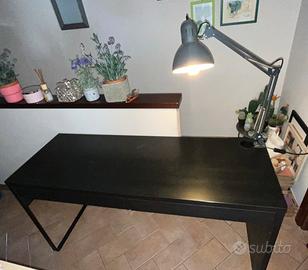 Questa scrivania nera è stata usata per tre anni completa di lampada funzionante le misure sono: 50x142