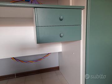scrivania bianca con cassetti verdi mis.90×57 altezza h.cm.75 con 2 cassetti