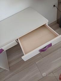 una scrivania, alcund mensole, una libreria aperta e 2 cubi esagonali da parete tutto in buono stato, solo la scrivania presenta in un angolo un pezzetto saltato.