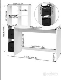 Scrivania Ufficio Compatta con Libreria Integrata, Bianco Lucido, Design Salvaspazio per Studio/Camera, 140x50x134