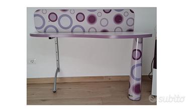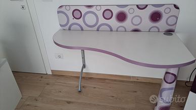 Scrivania a parete per cameretta bimba 135cm x 68cm x h 74cm lato corto 44cm ottima soluzione per piccolo ingombro sgabello regolabile su ruote incluso