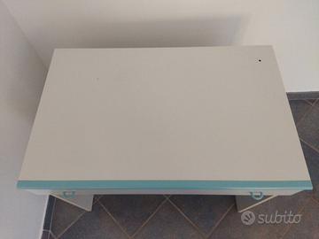Vendo scrivania per cameretta, usata. Qualche scarabocchio nel cassetto interno. Ha un buco sopra in alto a destra perché predisposto per braccio per monitor PC, se ne avete uno ce lo potete applicare direttamente. Vendo anche con sedia.
