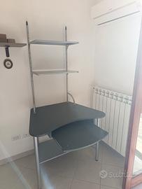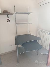 Struttura in acciaio con elementi assemblati, molto robusta accessoriata con carrello per tastiera e mensola mouse, 2 mensole con possibilità di variarne l'altezza. Molto bene tenuta.