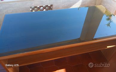 vendo scrivania x vari uso ottima anche in ufficio o studio medico misure altezza 81 larghezza 85 lunghezza 182 . ciliegio massello con sopra vetro di cristallo no spedisco