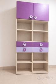 Dotato di 2 ante superiori, 4 cassetti centrali e 8 vani a giorno, ideale per cameretta, studio o zona giorno.