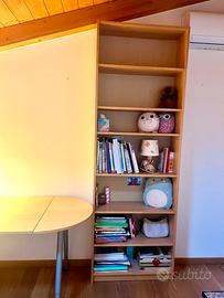 Vendo scrivania ad angolo IKEA color abete chiaro, regolabile in altezza, misure: Lunghezza 200 cm (accorciabile a 160 cm), profondità 80 cm. Più cassettiera con ruote, 4 cassetti, misure: profondità 62 cm, larghezza 45,5 cm, altezza 63 cm. Libreria: altezza 202 cm, profondità 28,5 cm, larghezza 80 cm (con possibilità di ampliare la libreria in altezza e in larghezza). Tutti i mobili sono dell’IKEA e in ottime condizioni! TUTTO COMPRESO 150€