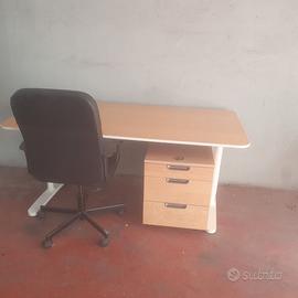 Vendesi Scrivania e Cassettiera Utilizzata pochissimo, Modello Bekant di Ikea, Base Bianca e tavolo Rovere.