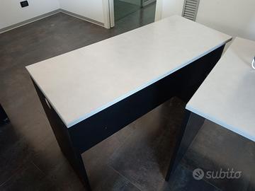 Scrivania con ripiano grigio chiaro melange e supporto nero.