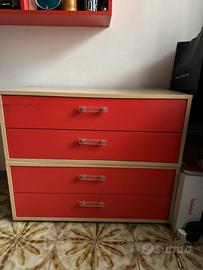 Comó in legno chiaro e laccatura rossa , perfette condizioni eccezione angolo dei cassetti interni come si vede da foto. Ma struttura intatta e perfetta