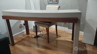 Scrivania usata con segni di usura. Il ripiano ha qualche graffio