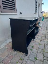 Scrivania colore nera con ruote girevoli e ripiano estraibile