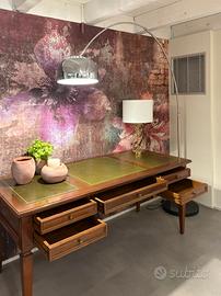 Scrivania classica in noce nazionale con intarsi in pelle colore verdone. Con cassetti.