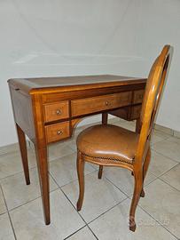 Vendo come in foto elegante scrivania in legno massello in stile classico, completa di sedia coordinata originale. Un mobile di qualità artigianale, ideale per studio, ufficio o ambiente elegante o arredo d'epoca.