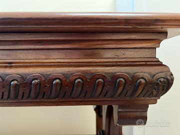 Vendo una raffinata scrivania in legno con finitura noce, caratterizzata da lavorazioni intagliate e linee ispirate allo stile rinascimentale. È un complemento d’arredo importante, perfetto per chi vuole dare carattere ed eleganza a uno studio o a un ambiente domestico. ✨ Caratteristiche: •Ampio piano di lavoro •Cassetto centrale spazioso •Ripiano inferiore funzionale •Struttura robusta e stabile •Dettagli intagliati di pregio 📌 Condizioni: ottime, perfettamente utilizzabile, con lievi segni del tempo che ne valorizzano il carattere 📏 Ideale per studio, ufficio o ambiente classico 💰 Prezzo: 650€ trattabili 📍 Ritiro a mano La scrivania viene consegnata libera e pronta all’utilizzo. Gli oggetti presenti nelle foto non sono inclusi nella vendita. Valuto offerte serie. Disponibile per visione dal vivo.