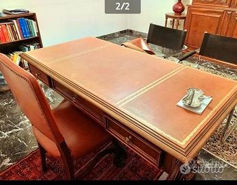 Vendo elegante scrivania in legno massello con piano rivestito in cuoio, ideale per studio, ufficio o ambiente classico.