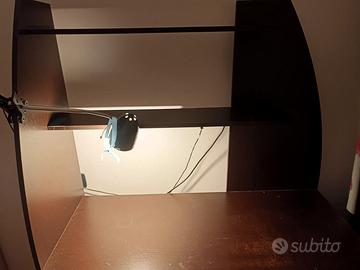 La scrivania dispone di un cassetto con due vani e due mensole superiori, come da foto. ATTENZIONE: lucetta non inclusa.
