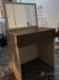 Vendiamo comodino/scrivania in ottime condizioni. Presenta uno specchio al suo interno e può fungere anche da contenitore. Misure: 48x63.5x71 cm