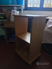 Vendo scrivania più comodino e mobiletto con ruote come si vede nella foto ,no spedizione.